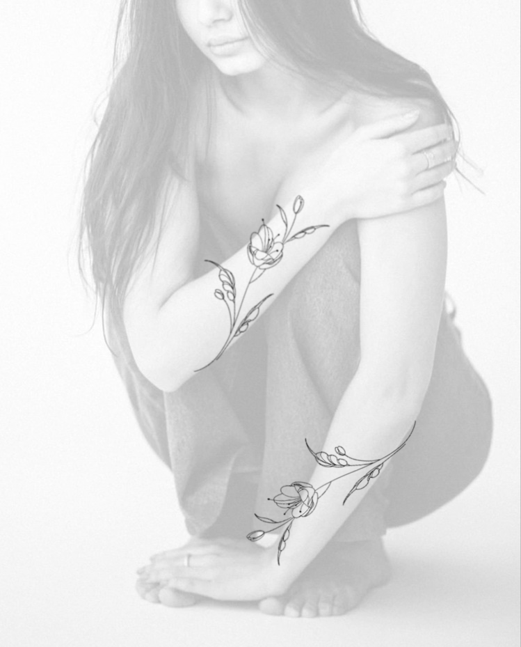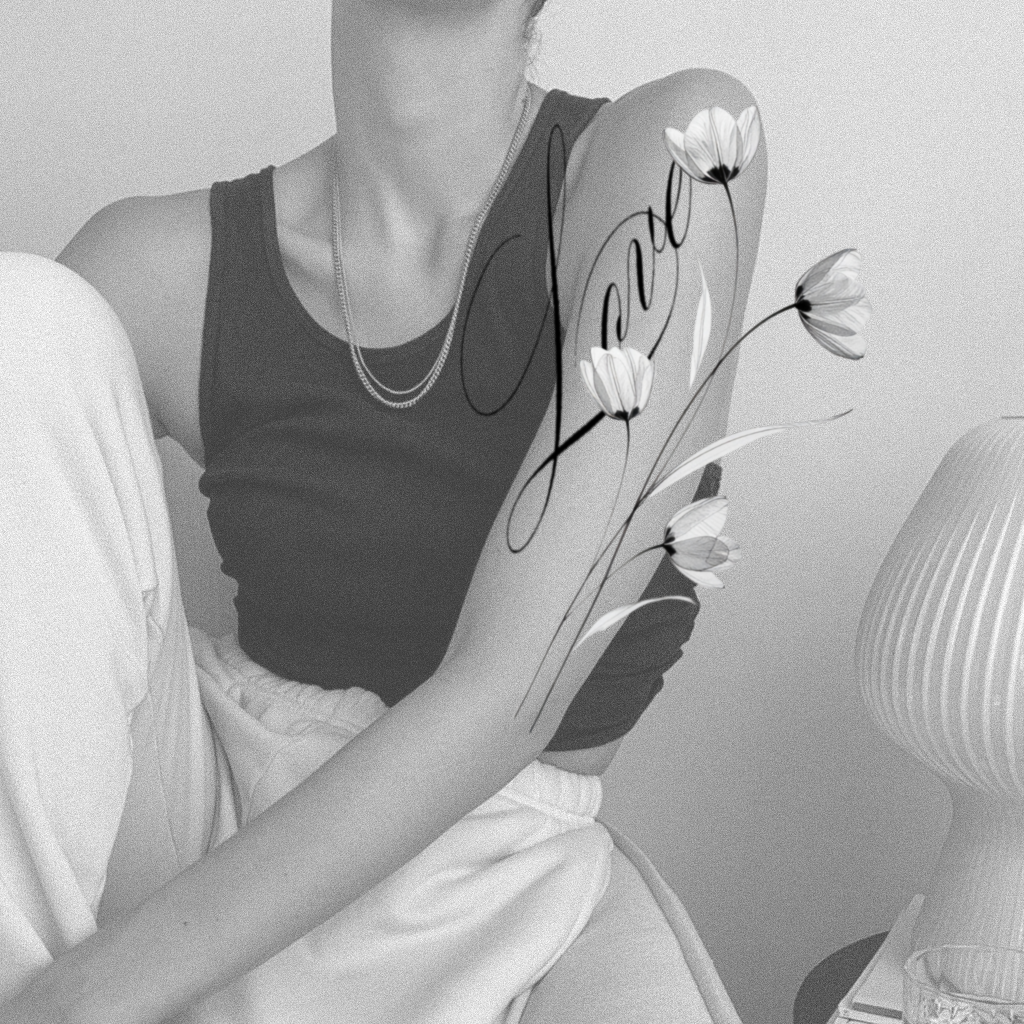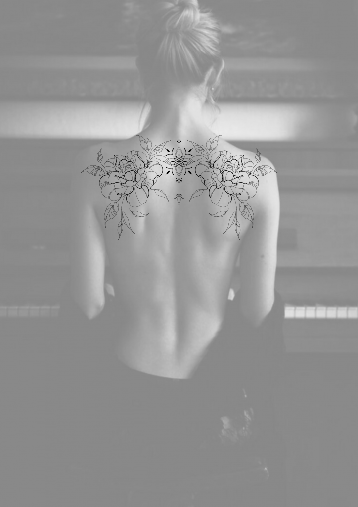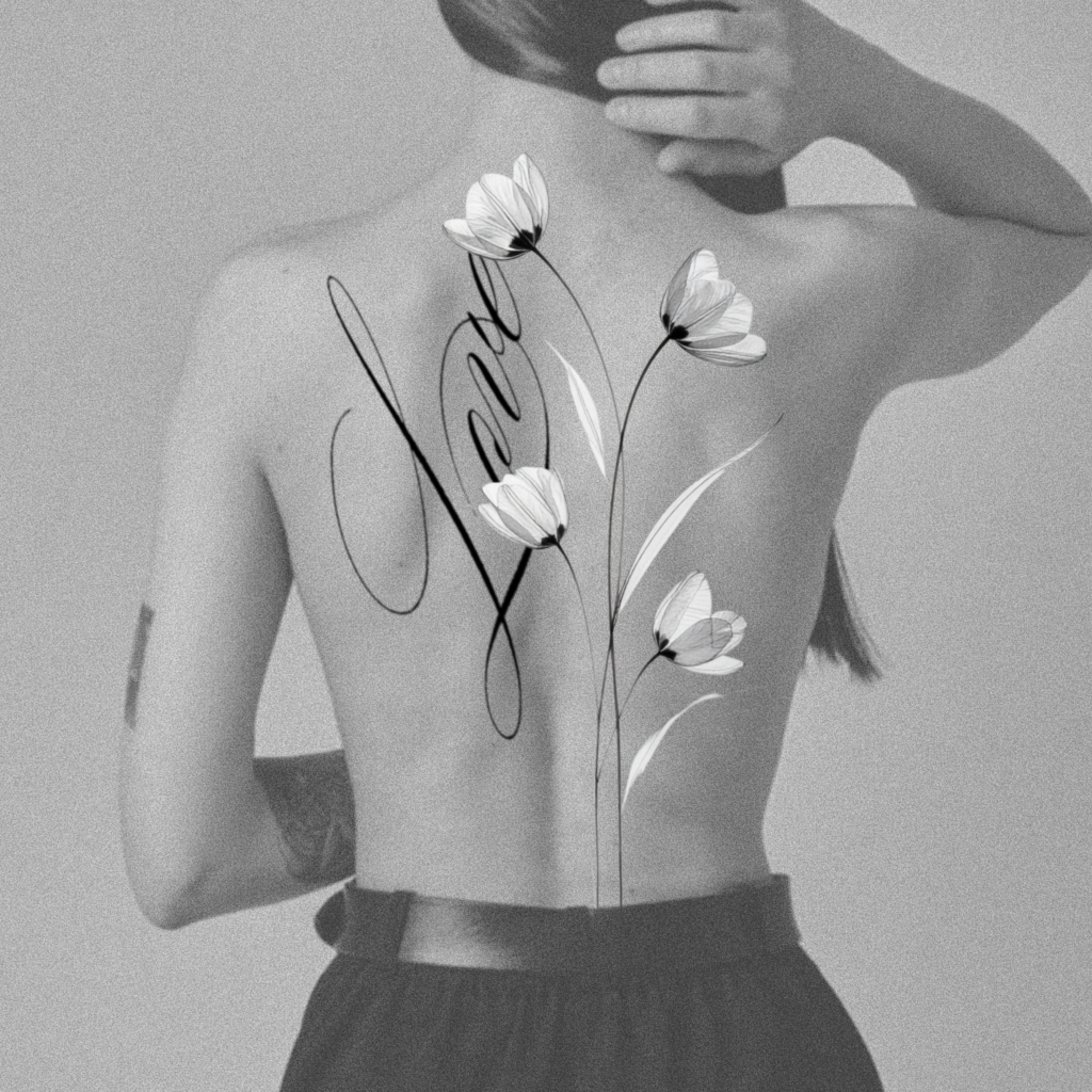 blumen und blätter werden beim tätowieren dezent schattiert. (für beispiele siehe galerie)
