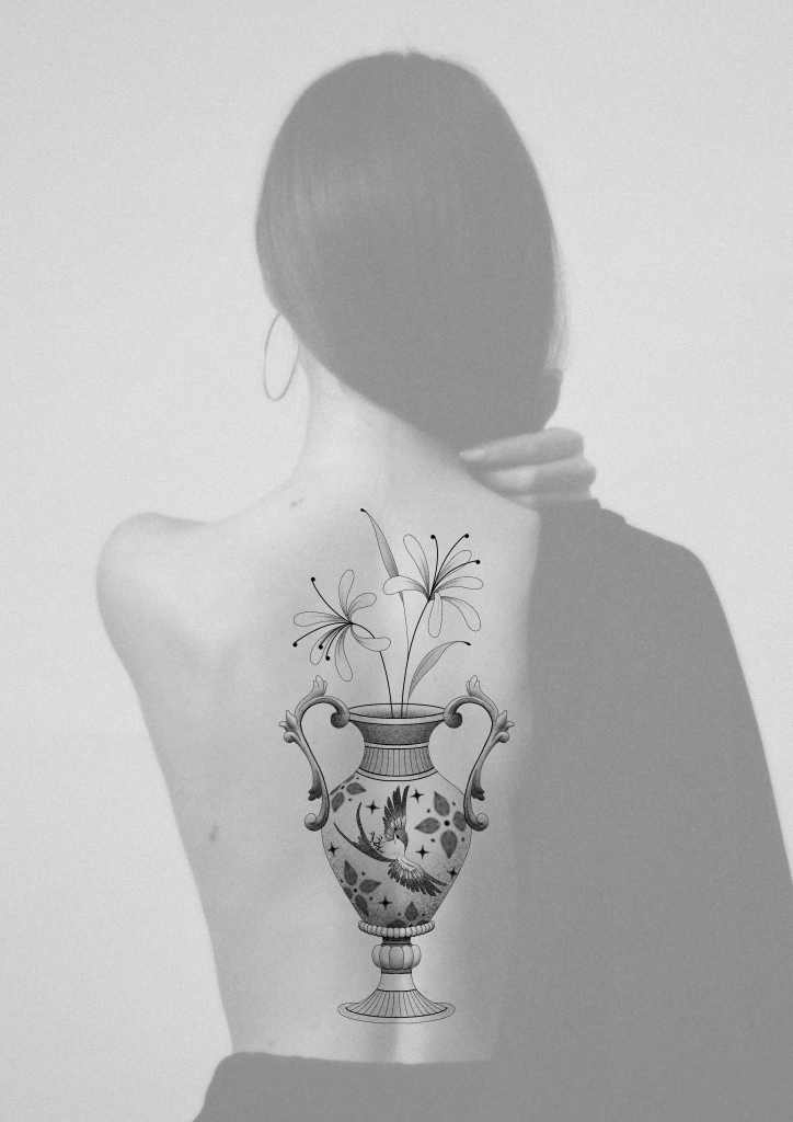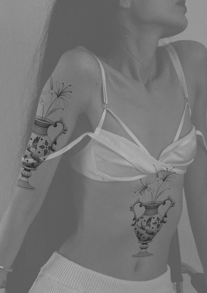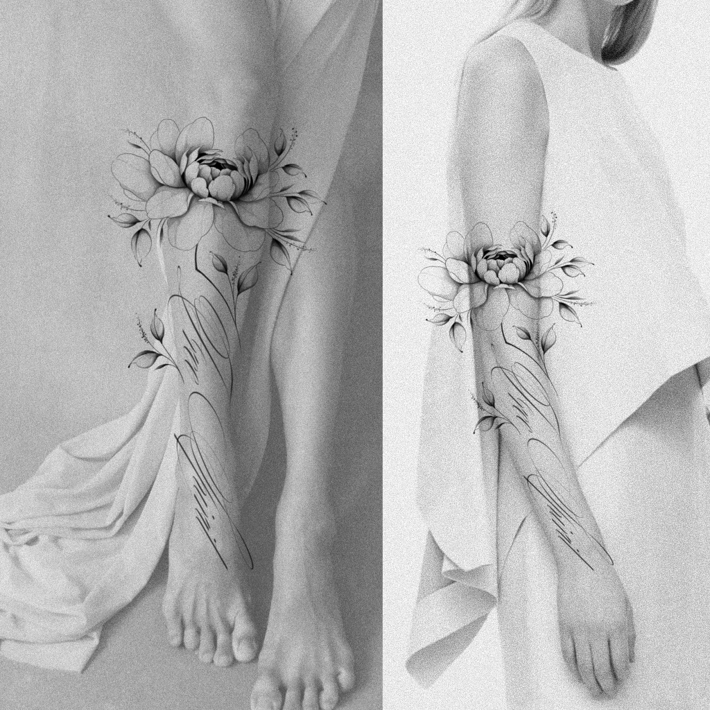 blumen und Blätter werden beim tätowieren dezent schattiert. (für Beispiele siehe Galerie)